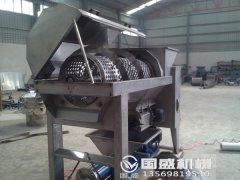 果蔬破碎機在生產過程中處於螺旋壓榨機之前的一道工序,當螺旋壓榨機對有些物料的脫水效