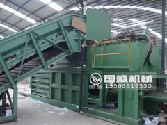 將液壓打包機的打包繩子串過91香蕉视频免费壓縮機後麵的自動彈緊裝置,並順著打包帶槽安放,之後將
